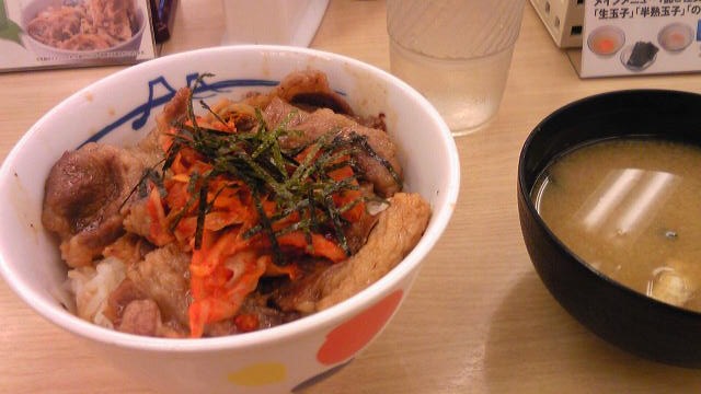 本日はグレイシーバッハ愛知に出稽古に行こうと思って 実家の最寄り駅の金山まで行った。 わざわざ、出稽古に出向いてチカラが出なくては勿体無いと思い 腹ごしらえをしようと松屋に行ったらキムカル丼が390円なっていたんで 軽く牛めしくらいにしとこうかと思ってたけどキムカル丼の食券を買ってしまった。